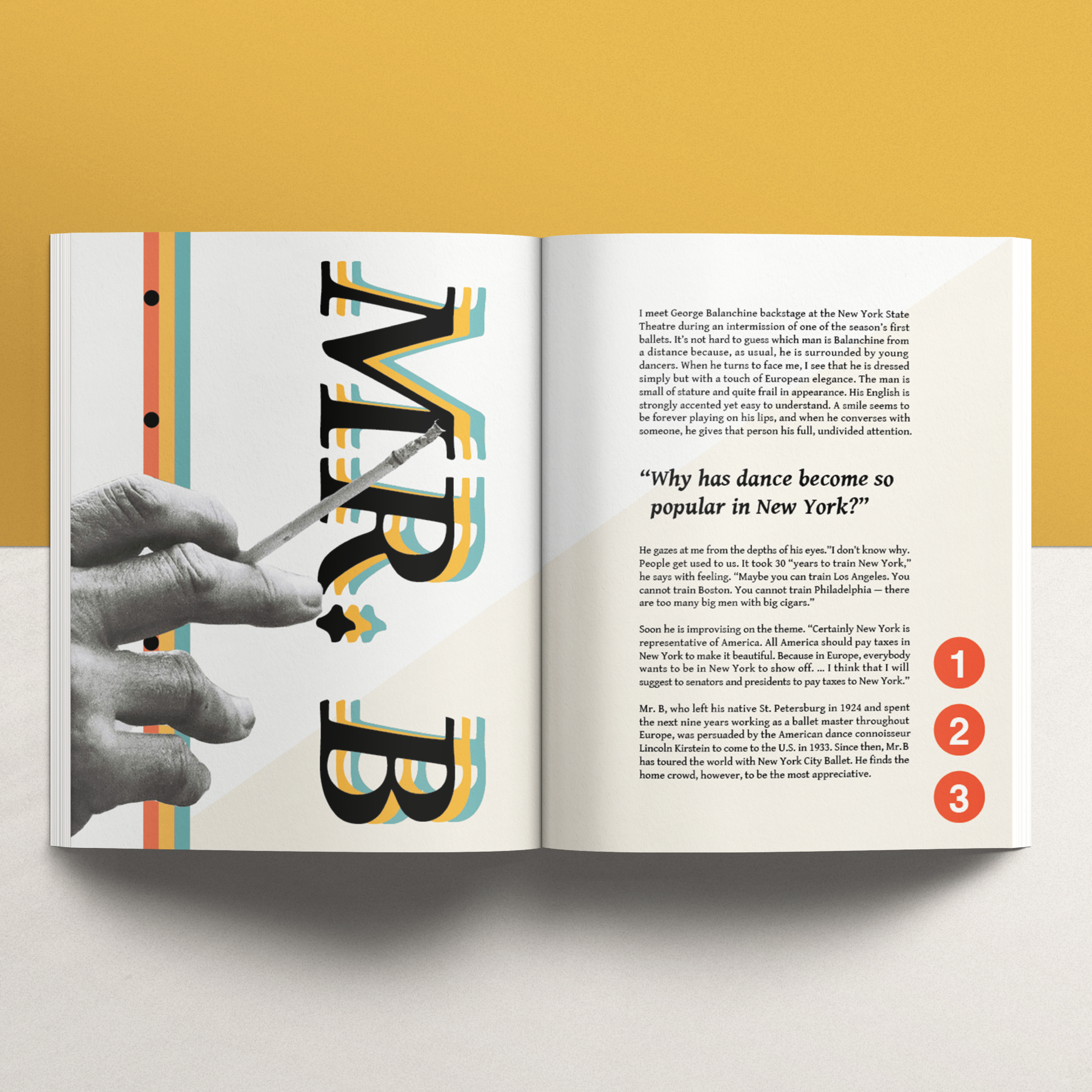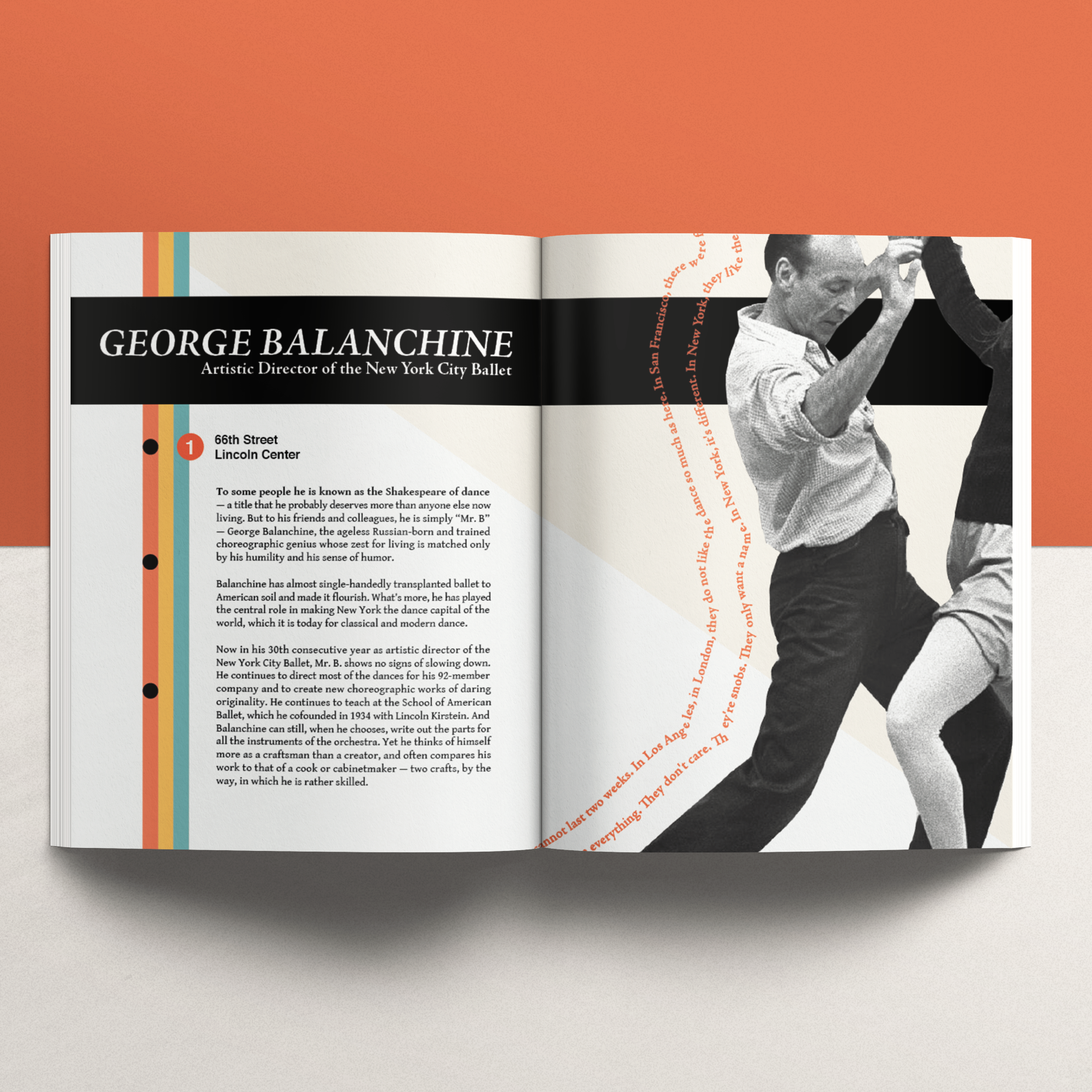 A booklet featuring selected interviews from Max Millard’s 100 New Yorkers of the 1970’s. The interviews are tied together through the visual narrative of a subway map, as each individual is defined by their ‘stop’ on the 1 train route. Expressive typography and retro design influences create a balance of vintage and modern voice.